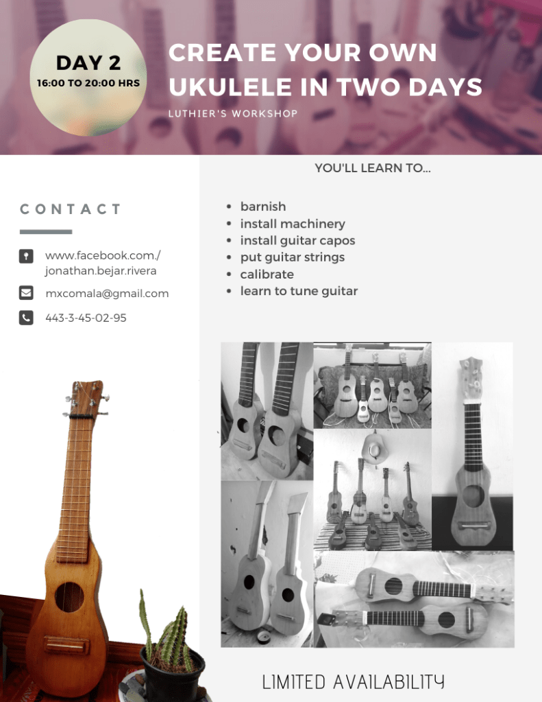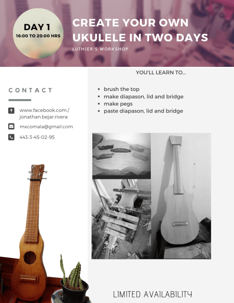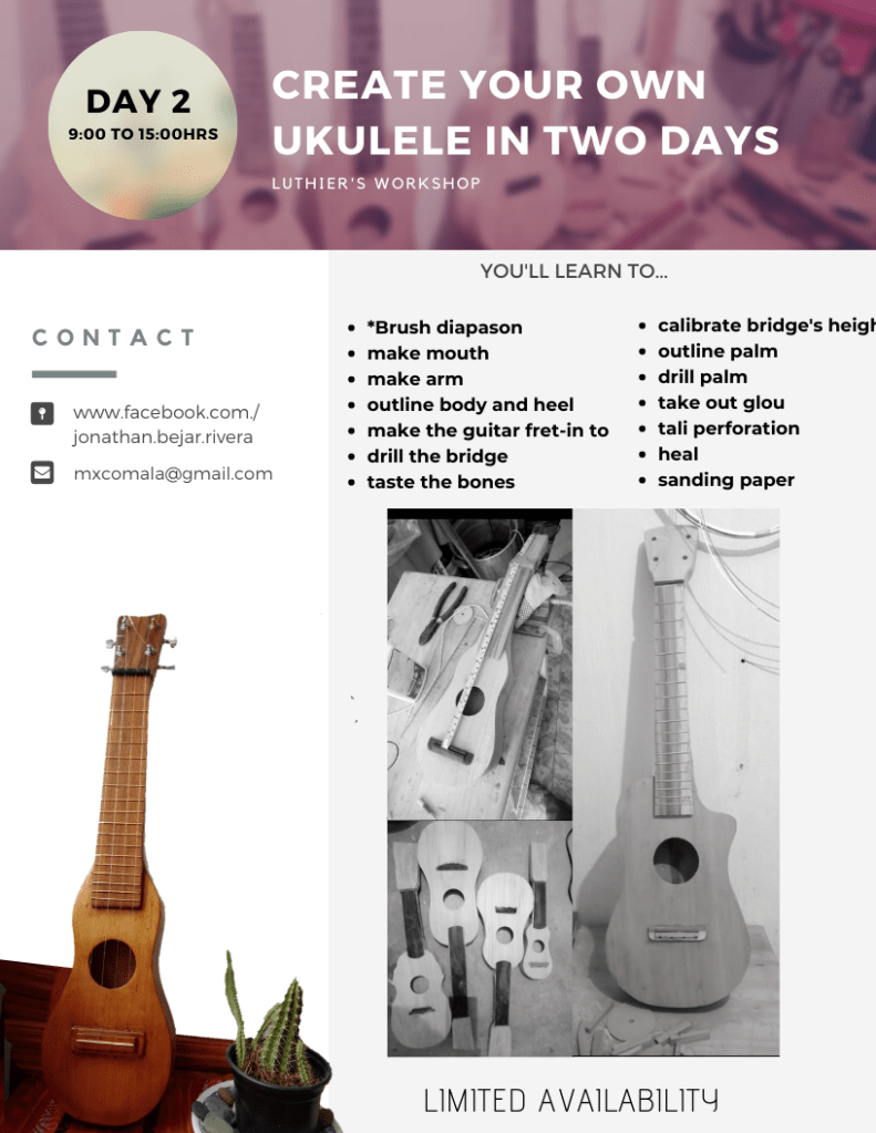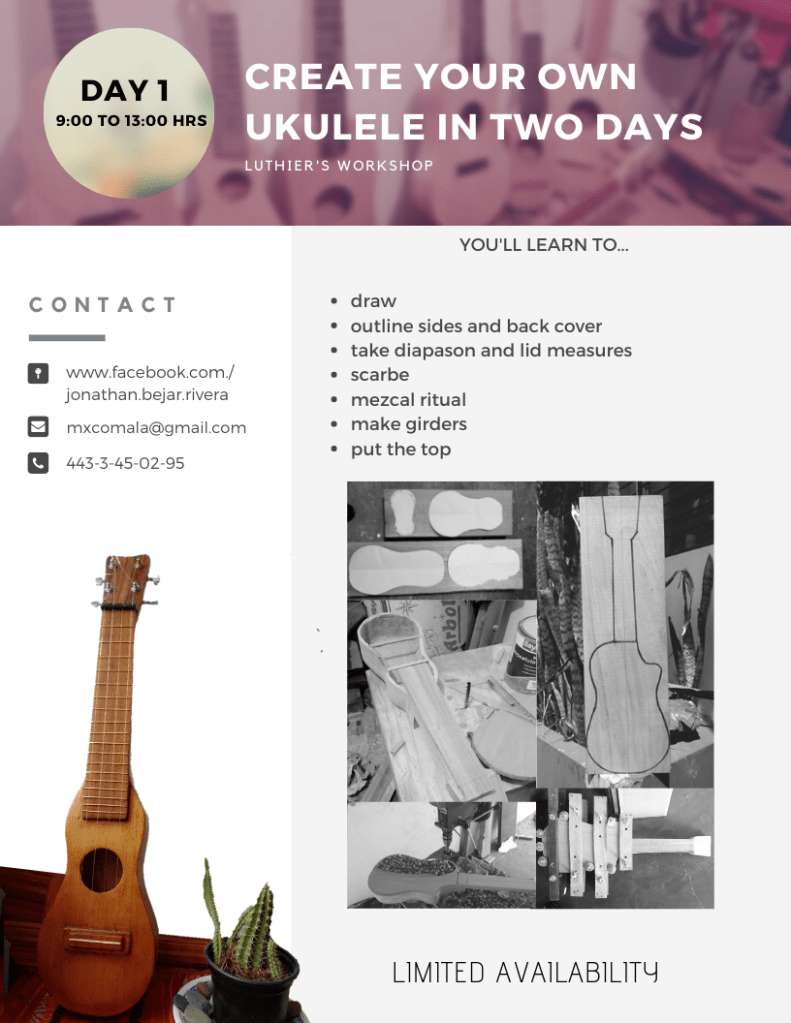 The luthier’s master Jonathan Bejar guides you in your ukulele creation, and you will also learn to play a traditional mexican song.