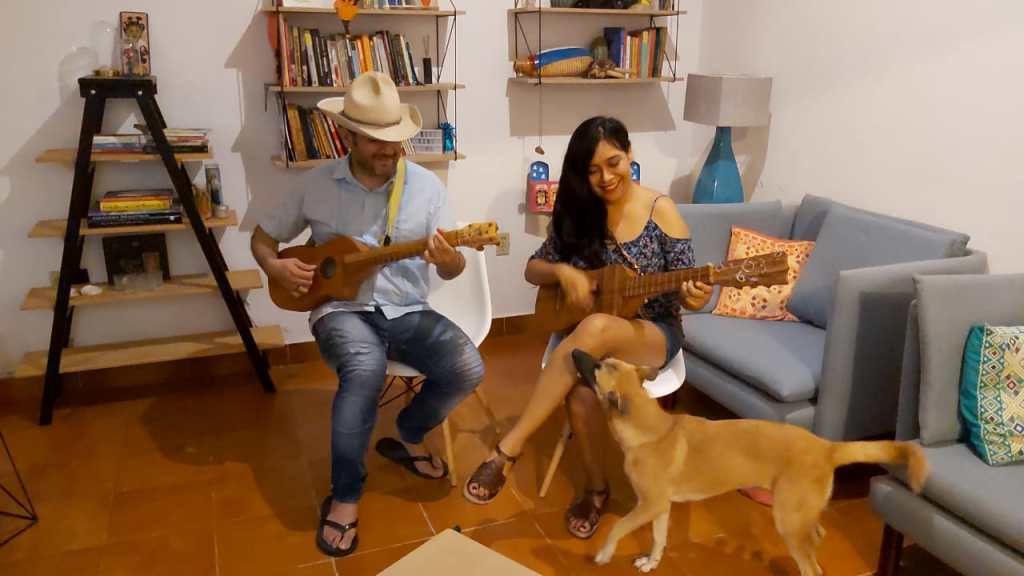 Somos Sofía y Jonathan, fusionamos el sonido de la jarana y el requinto jarocho con la literatura. Juntos comandamos la nave espacial llamada Les Comala que inició en un rinconcito de la Costa grande de Guerrero y que ahora navega en el ciberespacio y en comunas extranjeras y alienígenas. Pretendemos crear música a partir de la literatura y viceversa. Mochileros y jaraneros de procesión, ambos somos nómadas, viajeros que cambian de espacios físicos o imaginarios, deambulamos entre instrumentos y libros. Creemos que no sólo se viaja por el mundo real, sino también por ese otro espacio que se abre cada que iniciamos un texto o una nueva pieza musical.